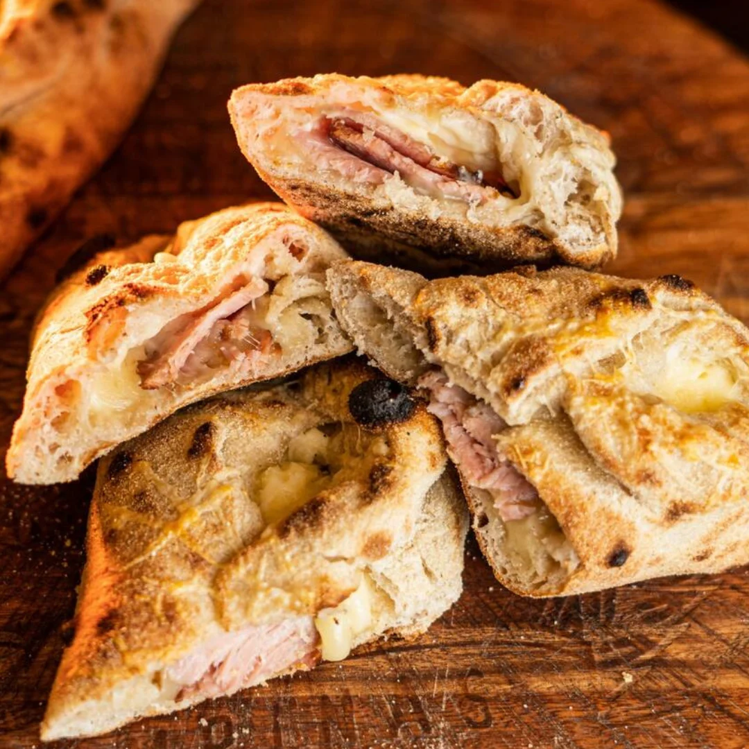 Calabresa artesanal e muçarela especial. Nossa massa artesanal é enrolada em formato de pão e recheada com calabresa artesanal fatiada fininha, muçarela especial e um toque exclusivo de pesto de azeitonas pretas. Uma combinação robusta de sabores em cada pedaço!
