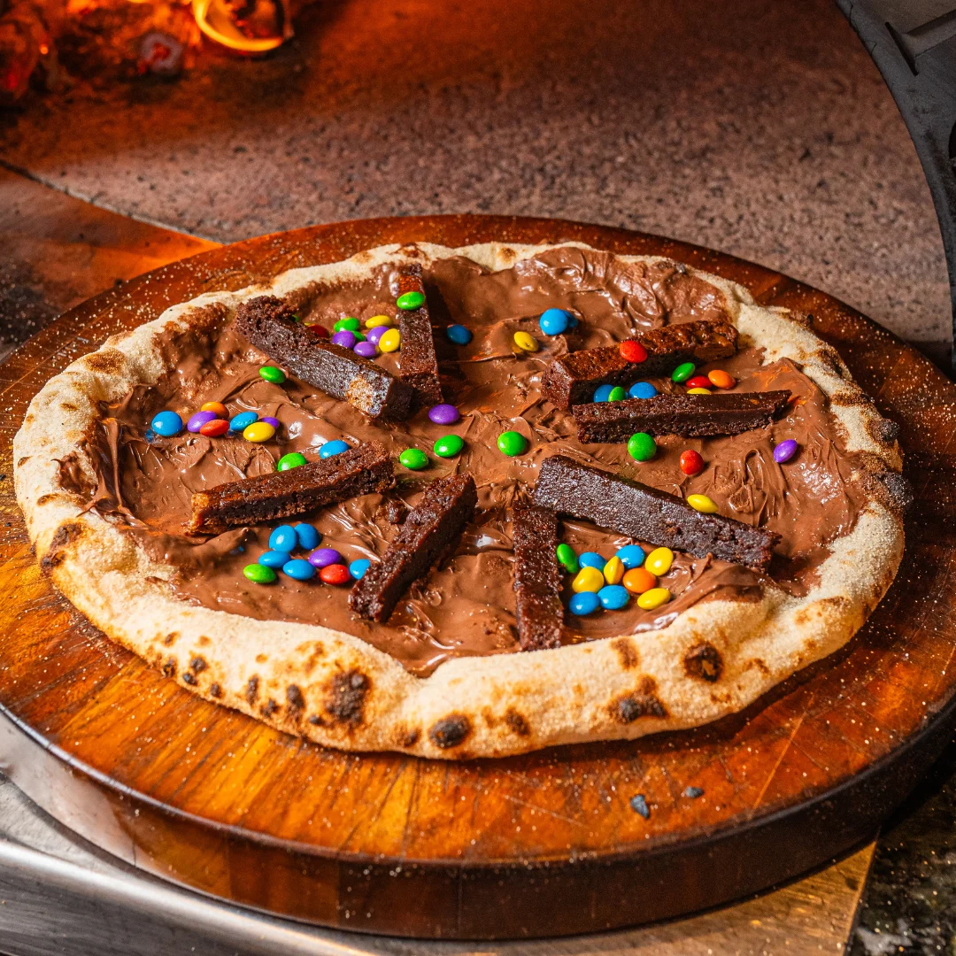Nutella e pedaços de brownie. A sobremesa perfeita para os chocólatras! Nossa massa sequinha e crocante, coberta por uma camada generosa de Nutella e finalizada com pedaços de brownie macio.
