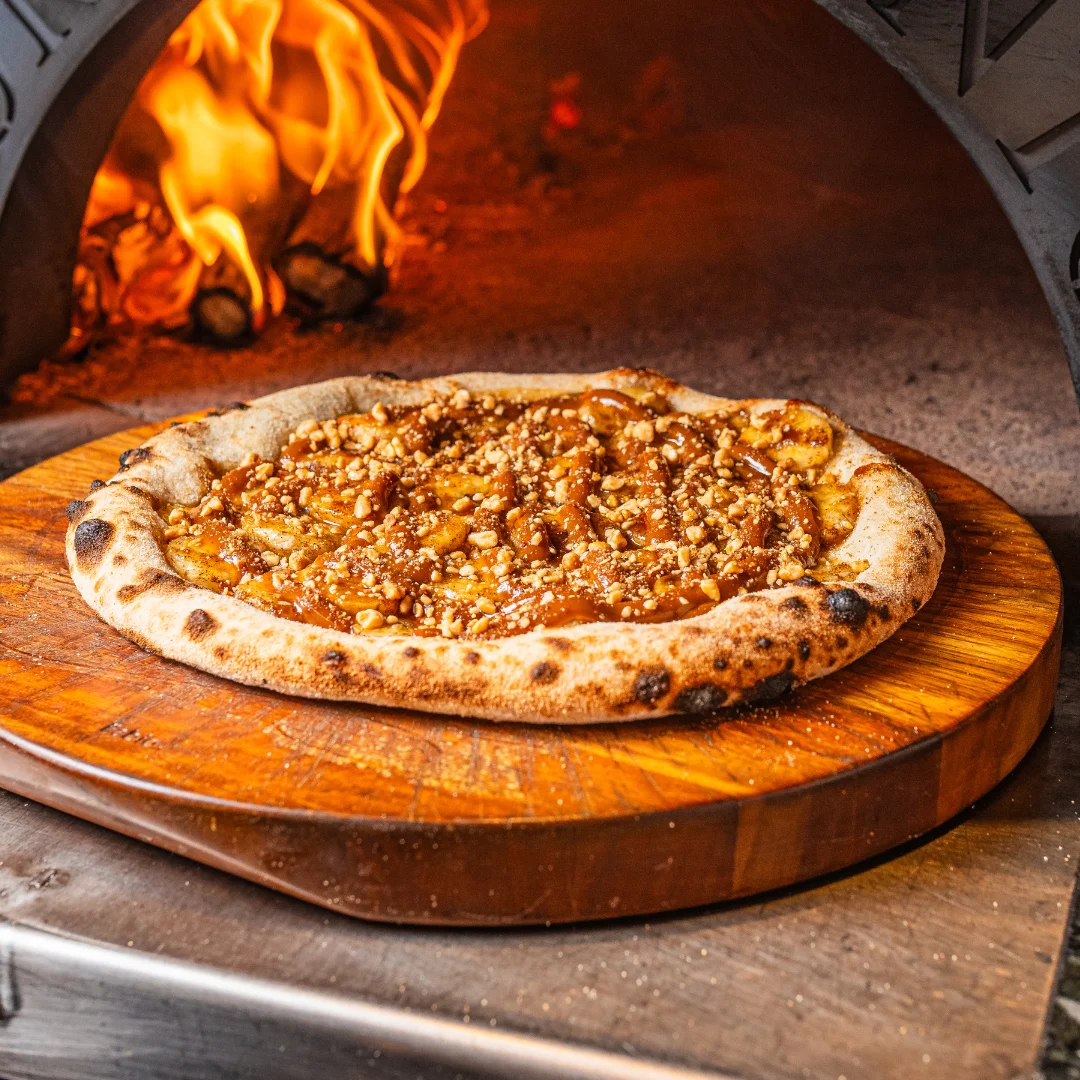 Mussarela, provolone defumado e gorgonzola. Para os fãs de queijo! Combinação cremosa e intensa com a mussarela do Mercadão, o sabor defumado do provolone artesanal e o toque inconfundível do gorgonzola, tudo derretido sobre nossa massa crocante.