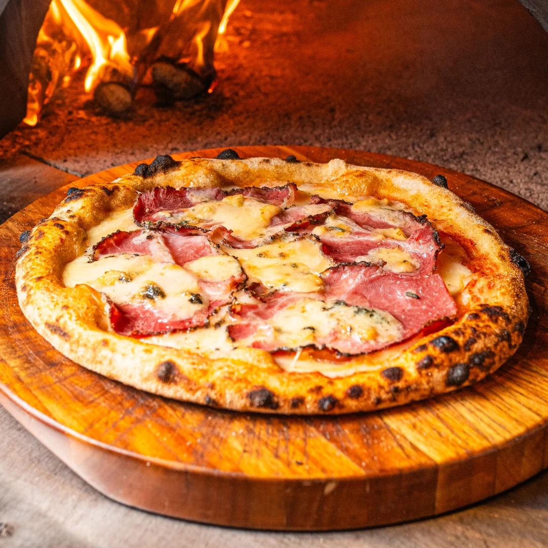 Molho rústico, mussarela, provolone, copa, gorgonzola e mel. Uma combinação poderosa! Nossa massa artesanal é coberta com nosso molho rústico, mussarela derretida e provolone, finalizada com copa defumada, gorgonzola e mel.