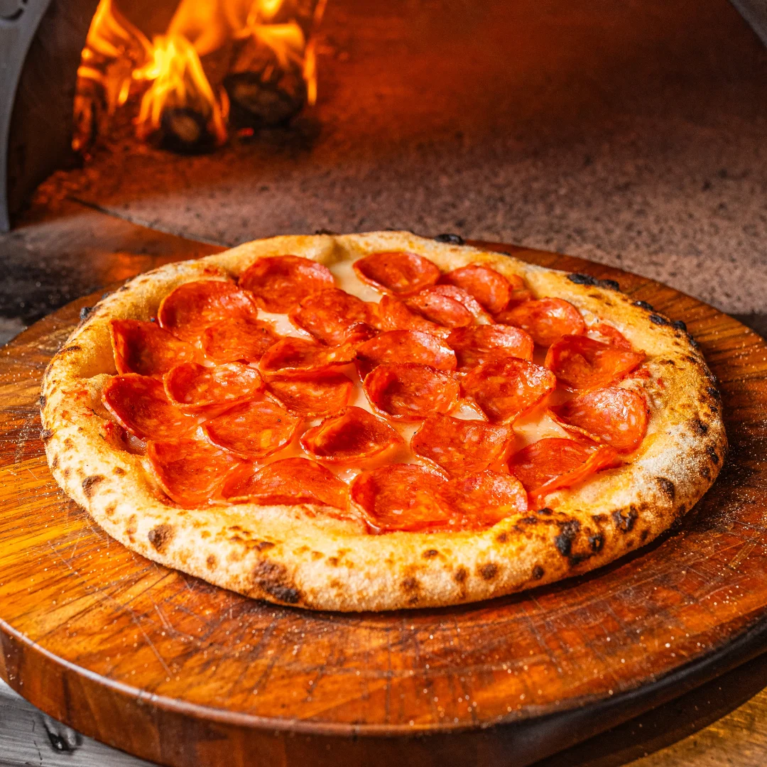 Pepperoni artesanal e mussarela. O clássico que nunca falha! Pepperoni artesanal de alta qualidade, coberto por mussarela especial do Mercadão, sobre nossa massa crocante e molho de tomates rústico. Uma pizza que é sinônimo de satisfação.